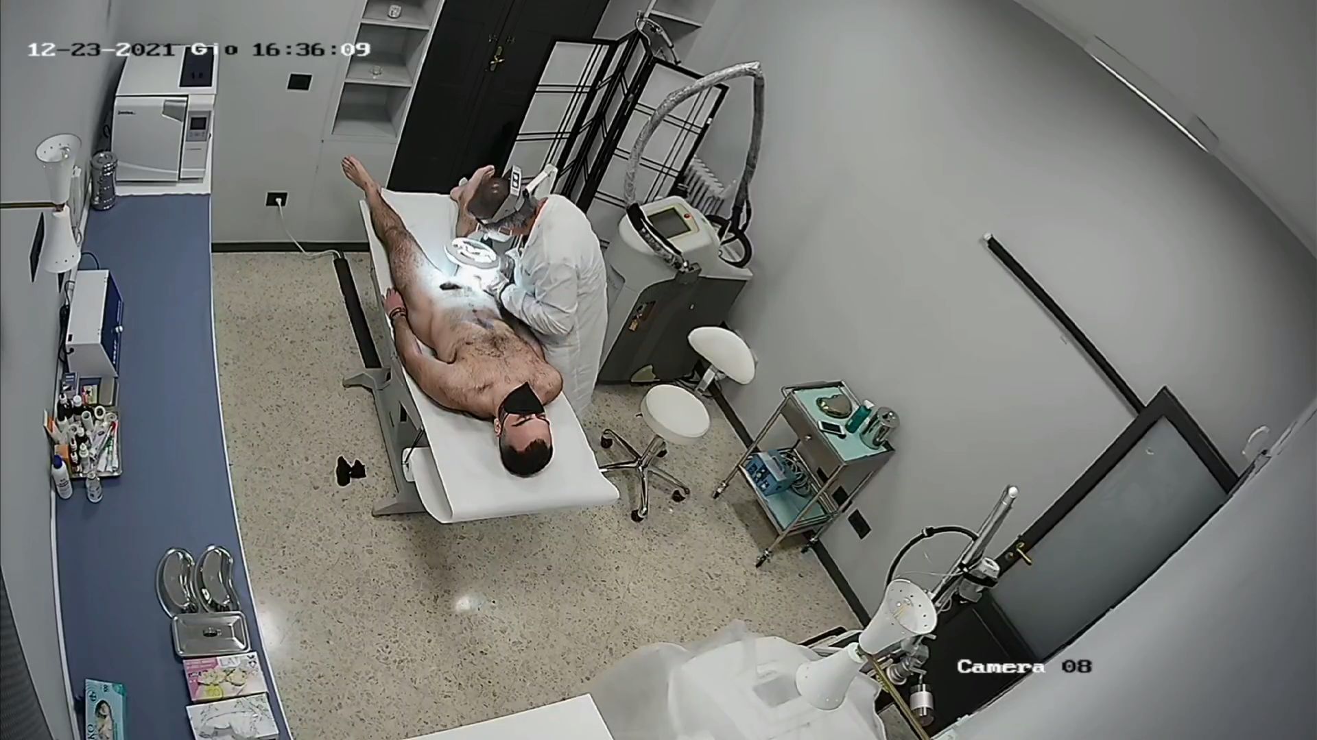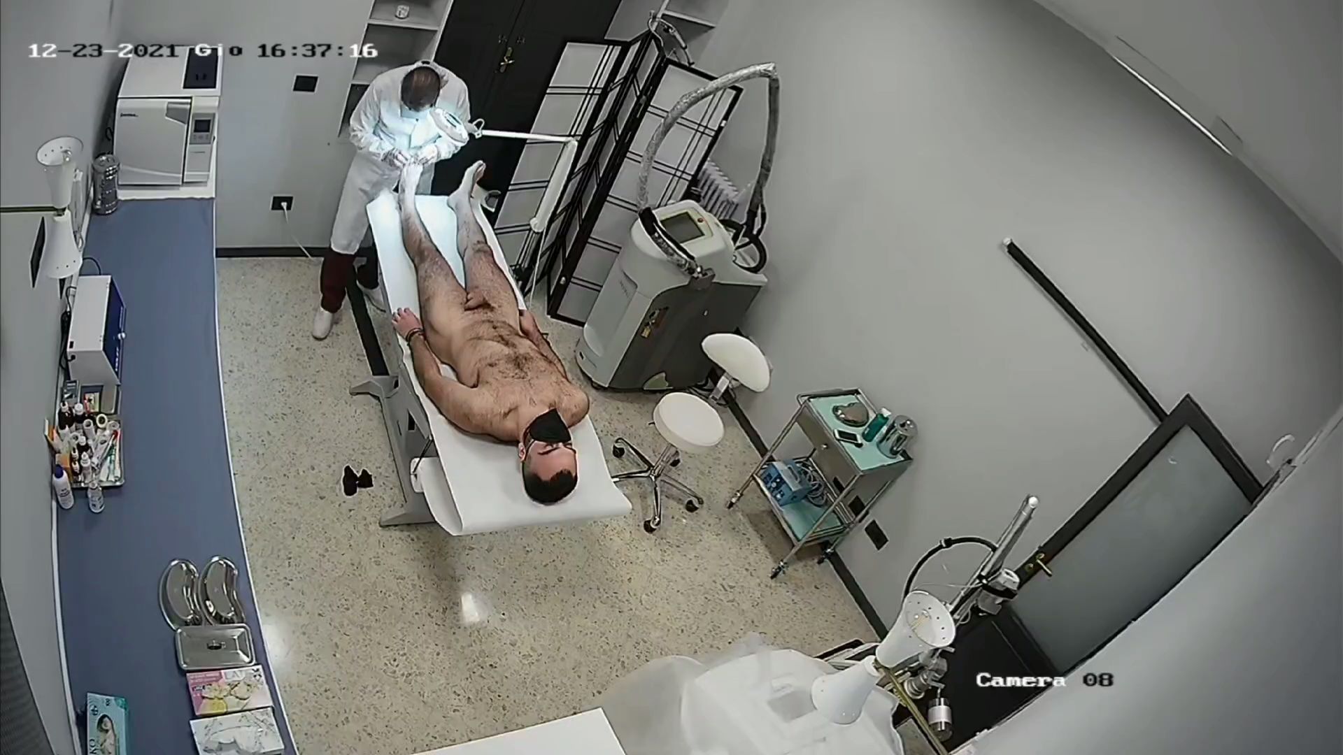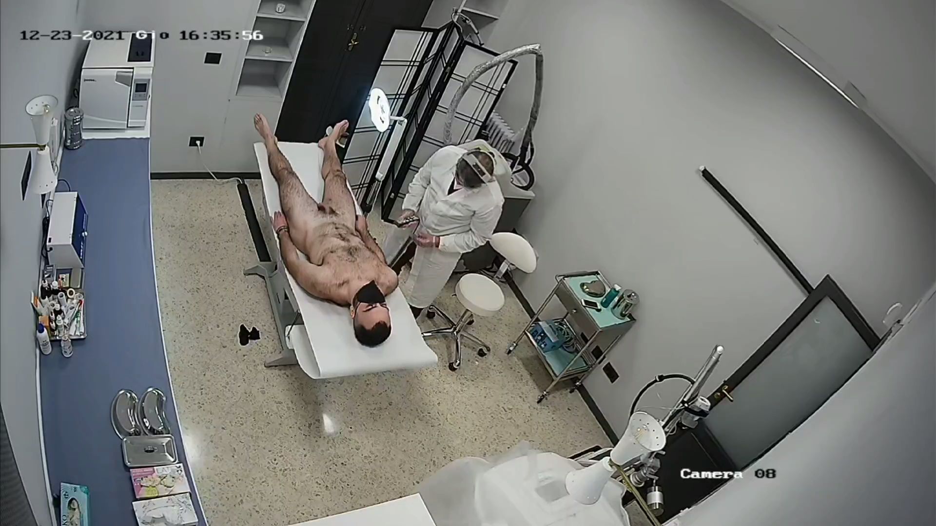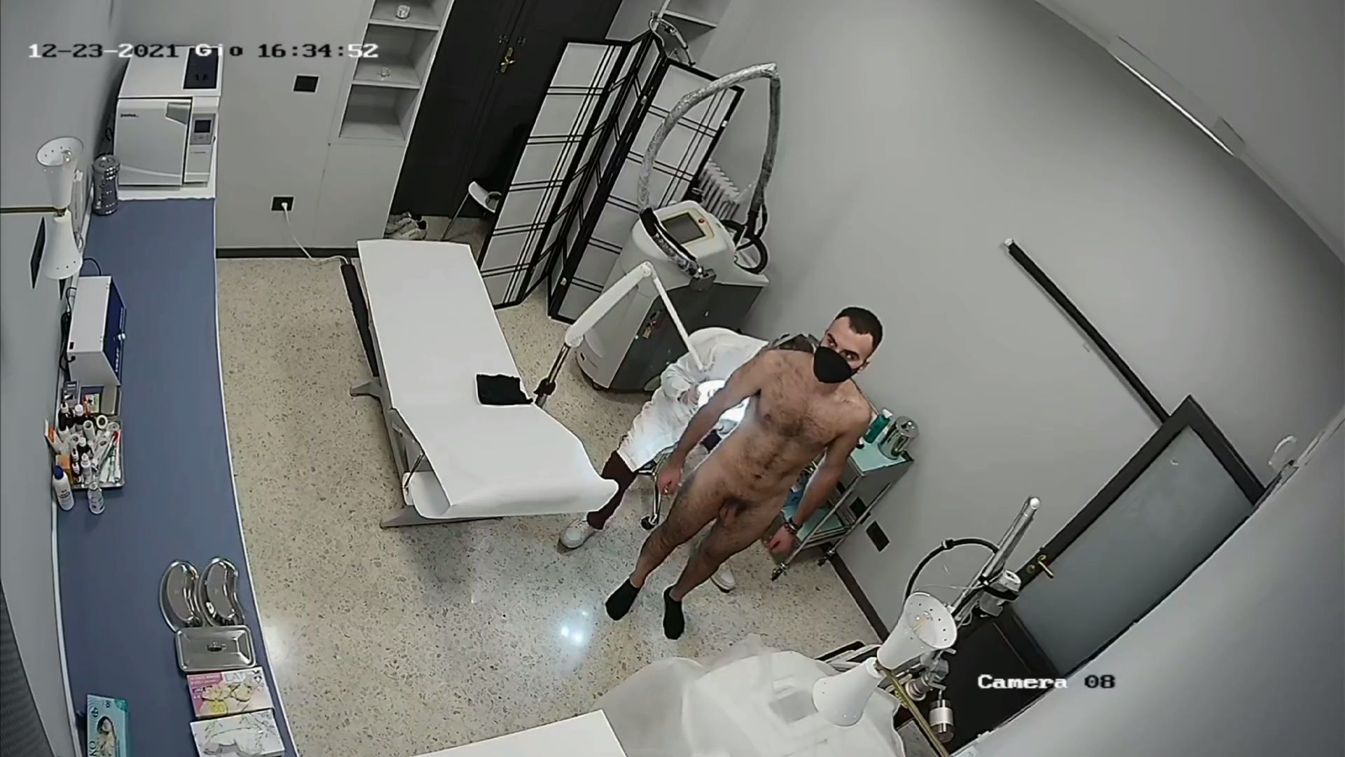 Hairy man's full body nude medical exam caught on surveilance camera!