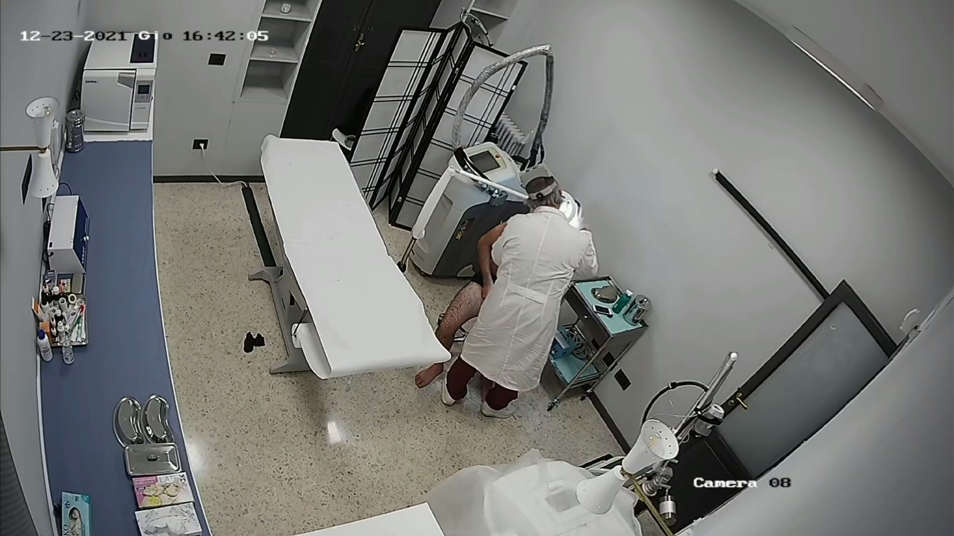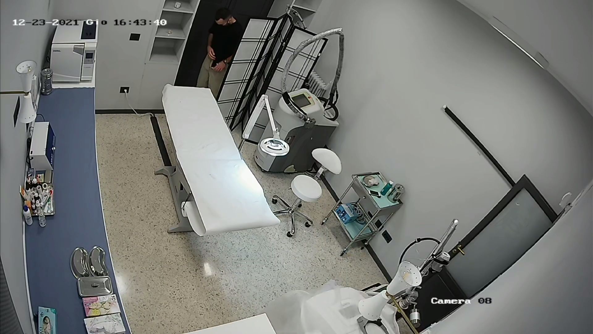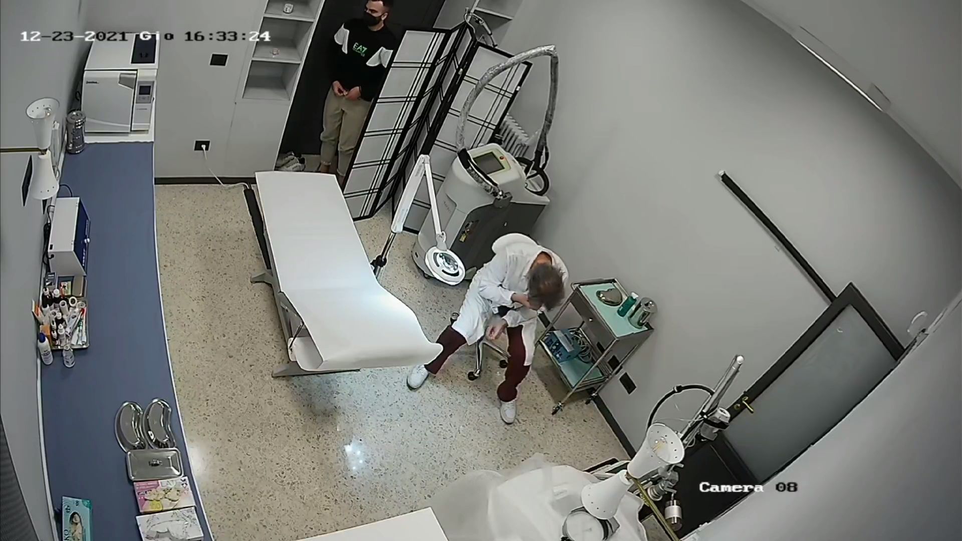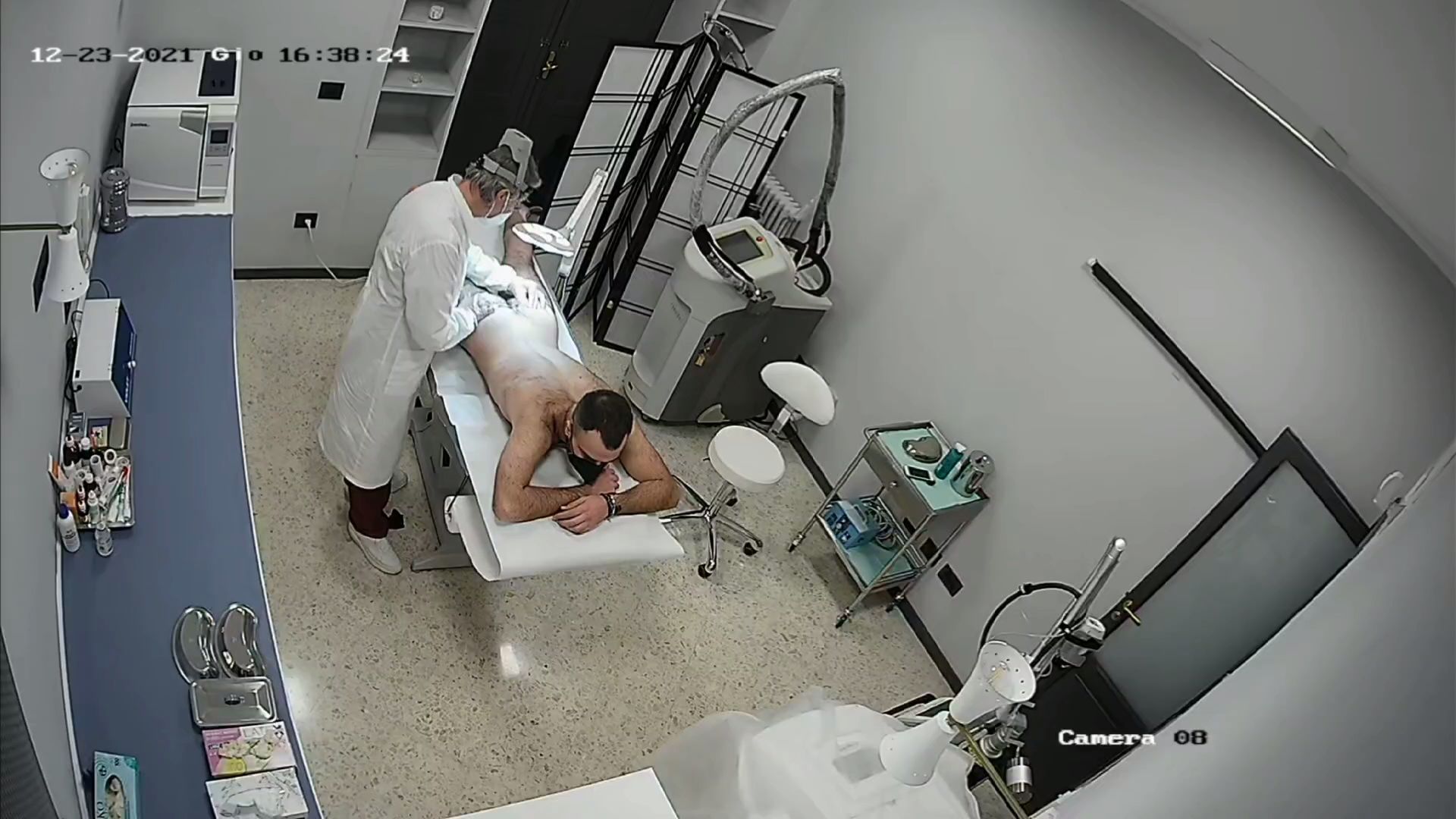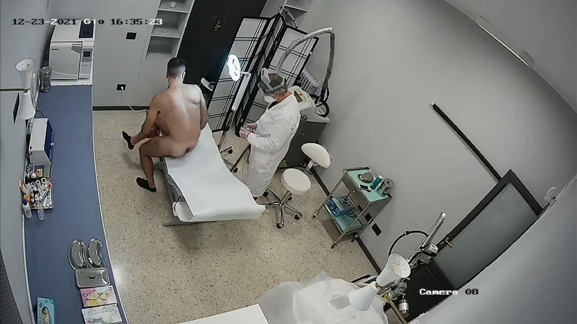 Hairy man's full body nude medical exam caught on surveilance camera!