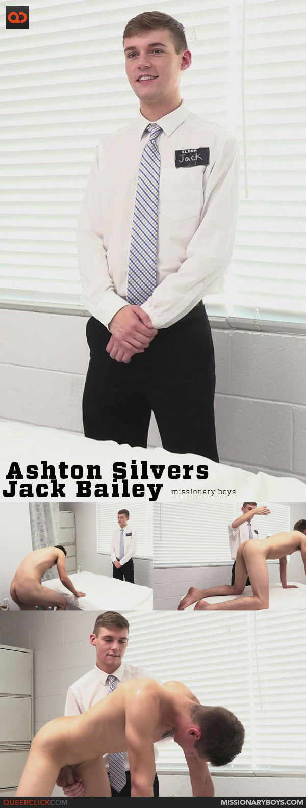 | Elder Jack Bailey was given priesthood authority to perform the anointing ceremony on Elder Ashton Silver, so he instructs him to strip naked and jump on the table. After Elder Jack bathes Elder Ashton with holy oil, he gets naked and jumps on Elder Jack's throbbing cock to complete the ceremony. |