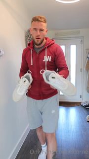 From his OF. Shows you his freshly worn trainers then goes up and strips. Shows feet, plays with foreskin and wanks a load off.