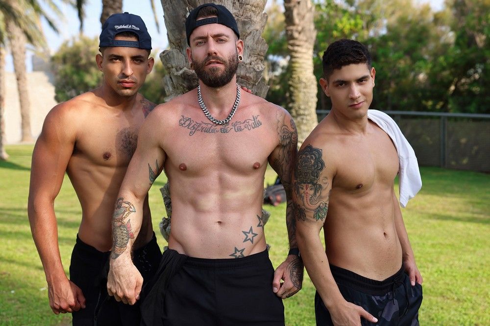 | Bastian was taking his first roller lesson, from a distance a guy was looking at them amused and then they quickly got to know him; Bastian ended up impaled on the tail of the guy and his rollerblading teacher.