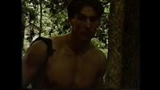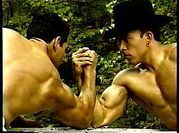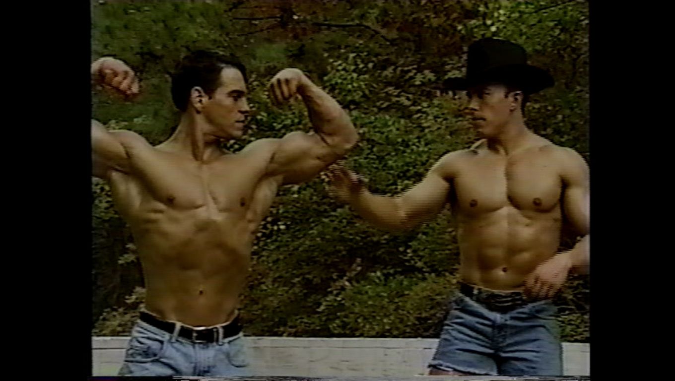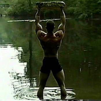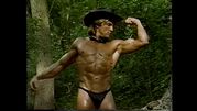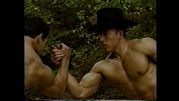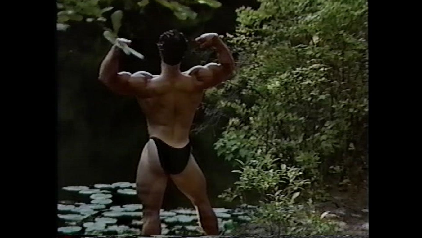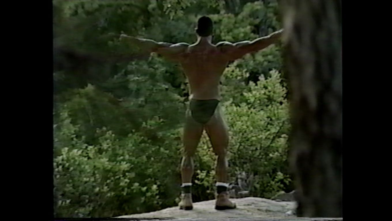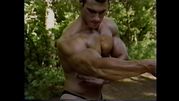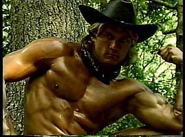 | Description: | A muscle fantasy video from a company called: "Muscle East Video" The video appears to have been produced in the 1990's. It was originally on VHS, then transferred to DVD. I did a search on the internet for "Muscle East Video", but could not find anything on them. The video starts out with guy walking in the woods, he comes across a bodybuilder flexing next to a stream. Bodybuilders keep popping up out of no where. No dialogue, which kind of adds to the allure. Just a sort of fantasy-type music. Kind of a classical/gothic mix, would be good as background music at a party. "Into the Woods" may not be filled with imaginative lyrics and cute costuming (well, there is some of that ... ) but it is like a cross between "The Blair Witch Project" and "The Forest of Magical Muscle Worship." The "Little Red Riding Hood" of this bulging bis-and-tris allegory is a young muscle stud (Jason Dayberry) with an amazing set of pecs and an even more amazing set of dark, large, and totally suckable nipples. And, even before he takes his clothes off, you can tell he has an amazing, worship-worthy body. By the time he gets most of his gear off, you find out you’re wrong -- he actually has an unworldly, fantastic body, a V-shaped torso and 6-pack abs, and is by far the most outstanding stud in the entire cast, which, in a cast of many, is quite a compliment. On his journey through the forest, as he encounters muscle guys of every type -- they shed their clothes (no nudity) and pose down, flexing and showing off for the camera. Whatever clothing they have on to begin with is minimal, and they quickly strip down to posing suits or underwear. All of the guys are truly magnificent, and have obviously taken a lot of time to create bodies that are out of this world. Then, as quickly as they appear, they blink out of sight -- kind of like Endora, only without the dramatic hand gestures and six layers of eye shadow. And our hot young stud continues his journey. The production values of "Into the Woods" are mostly fine, with the exception of one segment, which is almost too dark to see. The idea is that there is (I think) an eclipse of the sun, or maybe the sun goes behind a cloud for a minute, but the shot is so dark that you can hardly make it out. The other guys in the video, though, are filmed in brighter light. This DVD is filled with the kind of hot bodies muscle worship fans everywhere can appreciate. DVD does NOT contain sex or nudity. Running time is 75 minutes. All images are direct scans from the DVD.