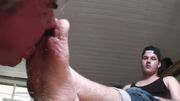 Slave sniff and lick master's smelly nike sneakers, once white socks, sweaty feet and eat biscuits crackers cookies from feet, also take spit and cigar ash with mouth