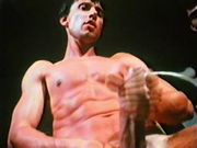 Divided into these 8mm film loops: Buddy; Tongue & Groove; Grand Slam; Hollywood Horny; Ball Buster and Batboy's Delight. source: promotional material 1. Chris Burns solo, J.W. King solo, Jon King solo, Jack Burke solo, David Hix solo, Robert Sims solo, Jack Burke solo, Tony Prince solo, Derrick Stanton solo The 9 member baseball team enters the locker room after the game and start to strip out of their uniform. Beer is shared out and as the guys start getting naked, David Hix suggests having a circle jerk and everybody joins in. This scene permeates the entire video being used as a segue between each scene. Chris Burns' fantasy is the first one to slip into the next scene. Not sold separately as a loop? 2. Buddy (LagunaPacific) Buddy Preston OrgAt, Chris Burns OrgAb On a yellow couch in front of an aquarium, Buddy Preston is playing a guitar when Chris Burns arrives. They kiss and then Buddy goes down on Chris. Some through the aquarium (with gurgling) shots happen while Buddy takes his turn sucking. They 69 on the couch and then Chris kneels in front of the fireplace to get his ass plumbed. They continue as Chris lies on his back while Buddy pinches his nipples while fucking the prostrate Chris until he come. Buddy kneels over Chris and drops a load. Chris licks his dripping dick clean. Back in the lockerroom Chris is the first to come in the circle jerk. Promo: Winners and losers become the best of friends, after this game is over. ----- See picture magazine Buddy!. See picture magazine Asshole Buddies. found in collection Blue Vanities Tape 333 3. Tongue & Groove Giorgio Canali OrgAtRr, Joel Thoms OrgAbRg Joel Thoms is staring at Georgio Canali as he does carpentry outside the window. Joel goes outside, sits a few feet away and asks if he can watch. Georgio agrees but then they go for more as Joel starts sucking him. Moving inside they kiss and trade blow jobs until they switch to a 69. Joel rims Georgio while Georgio finger fucks him on a bed. Georgio gets his big uncut tool into Joels doggie ass as his loose balls slap Joel's perineum. With Joel on his back getting fucked, he pulls off a load and Georgio pulls out just in time to add his semen to the cream covered abs of Joel. In the locker room Jon King lets the 2nd load fly. Promo: After the big game, and some hard swings of the bat, Giorgio realizes that Joe, the first baseman, needed a good banging. Promo: This afternooon, carpenter Georgio Canali had something other than nails on his mind that needed a good hard banging—only to be agreed upon by Joel Thoms once he got a load of that big, uncut Italian dick. Once he had Georgio's topskin meat aiming for the ceiling, Joel found himself on his knees and that Italian sausage grinding and banging into his virgin asshole up to the balls. ------- See picture magazine Tongue & Groove. found in collection Blue Vanities Tape 333 found in compilation Wild Young Fuckers 4. Grand Slam (LagunaPacific) Chris Tyler (80s) OrAt, Todd Johnson OgAb Brunette Todd Johnson is skating when Chris Tyler invites him home to cool down because it is "too hot to be skating." Sitting at a kitchen table over drinks, Todd removes his shirt and then Chris helps him out of his tight little yellow shorts. Then the heat begins. Chris chows on the unshielded cock. Suddenly Chris is getting his ass reamed in the bedroom. They both jerk off a load and Todd cums on Chris's startled smiling face. Back in the lockerroom Tony Prince reaches his own large orgasm. Promo: The pitcher acted straight, till the first baseman threw a pitch, and found out the pitcher could also swing his bat as well! ------ See picture magazine Grand Slam. 5. Ball Busters (LagunaPacific) Steve West OgrAtb, Jack Burke OgrAbt Takes place in a livingroom. Promo: Two senior varsity players break all records in the unofficial game played every night, after team practice, in the locker room! ------ See picture magazine Cum Cruiser. found in collection Blue Vanities Tape 333 6. Hollywood Horny John Bach OgrAbt, Brian Richards OgrAbt Promo: A baseball game turns into another kind of game as they practice on each other's bats and balls! ----- See the picture magazine of the same name. found in compilation Flip Flop Fuckers (Catalina) found in collection Blue Vanities Tape 333 7. Bat Boy's Delight 34. Jack Burke OrgAbt, J.W. King OrgAbRr, Jon King OrgAtRg, Tony Prince OrgAt, Derrick Stanton Ogr, Brad Peters OrAt, Steve West OrAt, Robert Sims Og, David Hix OgAb Promo: Jon King keeps five star players down at once in the locker room. The team loses the game but scores big with everything else! ----- See picture magazine These Bases Are Loaded. Blue Vanities Tape 333 includes only 7.5 minutes of this scene for scene 3 and then 8 more for scene 5. found in compilation Locker Room Sex found in compilation Catalina Orgies 1 found in collection Blue Vanities Tape 333 found in collection Blue Vanities Tape 333 action notes: O=Oral; A=Anal; R=Rim; g=give; r=receive; b=bottom; t=top; |