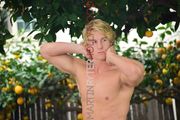 Blond hunky model jerks off and cums watching porn on his mobile. Short clip.
