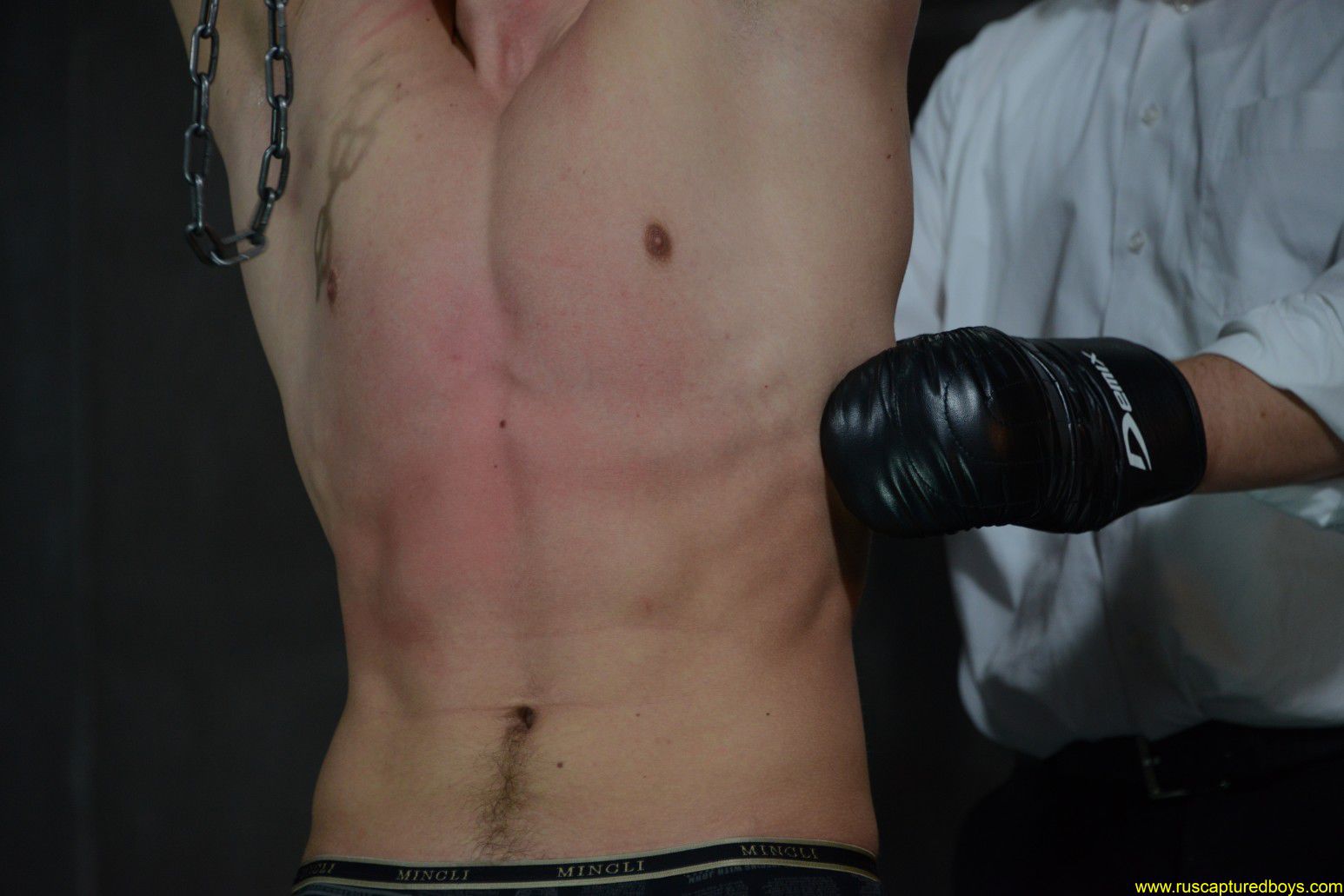 | Football hooligan Stas couldn't endure the needle torture and gave the testimony against one of his accomplices. We caught him and his friend. Now they are waiting for the weeks interrogations. Anyway, we will know who organized the fight at the football stadium. The first lot fell upon the prisoner Vlad. He will be severely interrogated with applying of gutpunching torture.