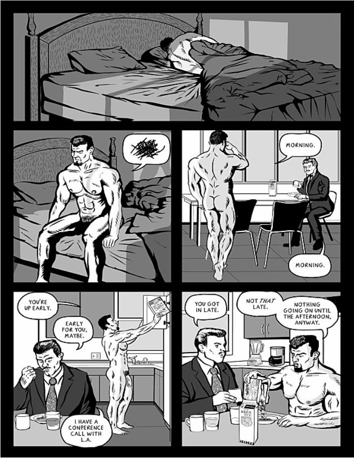 This first issue features the self-contained story “Unmade Beds.” Set amidst the gay expatriate culture of Tokyo, the comic is a quiet and lyrical examination of cross-cultural adjustment and sexual parity. This second issue contains ten short autobiographically-themed pieces about gay marriage, passing for straight, safe-sex negotiation, on-line dating, the legality of bi-national relationships, and other topics relevant to contemporary queer life. The third issue of this award-winning series collects the first three chapters of MacIsaac’s online serial “Unpacking”, about the development of a relationship between a commitment-phobic graphic designer and a corporate executive who isn’t quite everything he seems. The fourth issue of Steve MacIsaac’s Shirtlifter contains another standalone episode of “Unpacking”, MacIsaac’s graphic novel in progress, which he began in issue three. Matt is a Vancouver graphic designer who has begun spending time with a visiting businessman. The catch? The businessman is straight. And married. And their no strings relationship begins to get tangled. |
