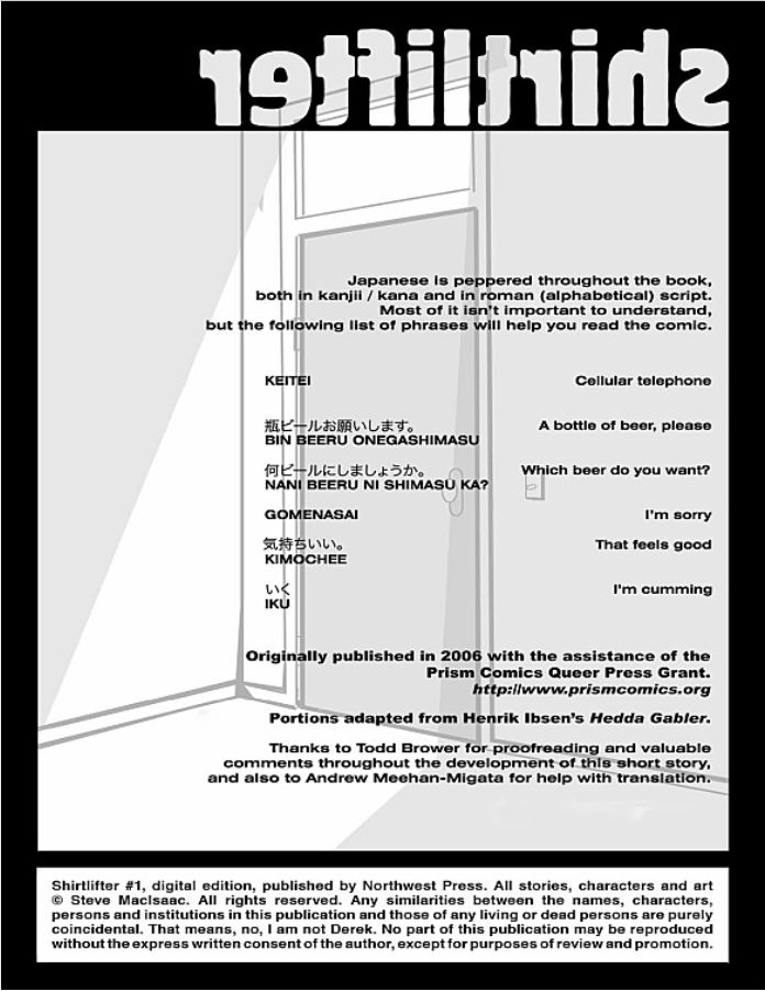 | Winner of Prism Comics first annual Queer Press Grant, Shirtlifter is a series of queer-themed short fiction comics from STICKY artist Steve MacIsaac.