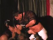 This is a compilation of Jimmy Z 'Bodybuilders' Jam' movies I was able to collect on here if and when they appeared. While it is a lot of them, unfortunately it's not all of them. Some of them also included additional behinds the scene footage and interviews with the performers. In general, the structure of each movie has a bodybuilder (four total per show) come out in a costume, e.g. football gear, police/fireman costume, other athletic gear (usually mesh), or fetish gear (read: leather). They would then slowly strip layer after layer until they were down to a posing strap. A choice few stripped down to nudity. Then, they would be oiled up by a member of the audience, and travel around the stage, dancing and flexing while being worshipped by members of the audience. Some performers even go so far as to allow sex acts to be performed on them. After each has performed, the four then come out together and engage in a pose-off and invite more touching (and tipping) by the audience. A lot of the performers in this series are very recognizable from other sources, such as Muscle Worship, MuscleHunks, or their own forays into porn, both straight and gay. A partial list of performers includes: Joey Jordan, Zeb Atlas, Carl Hardwick, Cody London, Jay Poison, Mickey Squires, Chad Conners, Damien Vincetti, Jake Gianelli, Brad Hollibaugh, Greg Reid, Tom Lord, Derek Anthony, Ricky Starr, Dave Stone, Rod Roddick, Derek Steel, Vin Marco, Chris Duffy, Derrick Rigg, Jason Lord, Dan Steele, Caesar, Duke Rivers, Monster Mike, Robert van Damme, Brian Cerf, Danny Lemos, Gabriel Marco, Vincent Marco, Alec Armstrong, Louis Magnone, Trent Fosters, Cody Miller, Johnny Bravo, and Matt Miller. |